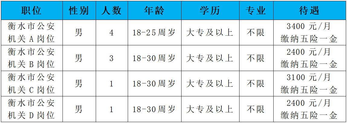 D崗位:熟悉計算機操作。同等條件下,退役軍人或有輔警工作經驗者優(yōu)先錄用。